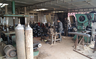 2、下料—卷圓—整圓—雙切—對口—手工焊—拋光—清渣—擴張—收縮—沖氣門孔—鋼圈;